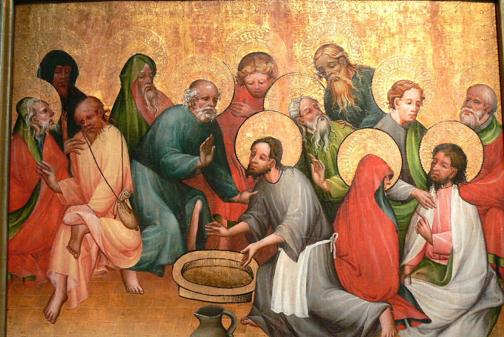 Pada saat itu Yesus bertemu dengan kelompok kecil, mungkin hanya terdiri dari dua belas murid, dalam suasana pribadi. Sebelum makan, Yesus melakukan pekerjaan seorang hamba yang rendah hati, yaitu membasuh kaki para murid. Ia menjelaskan bahwa ini adalah pelajaran yang dapat dipetik para murid-Nya.